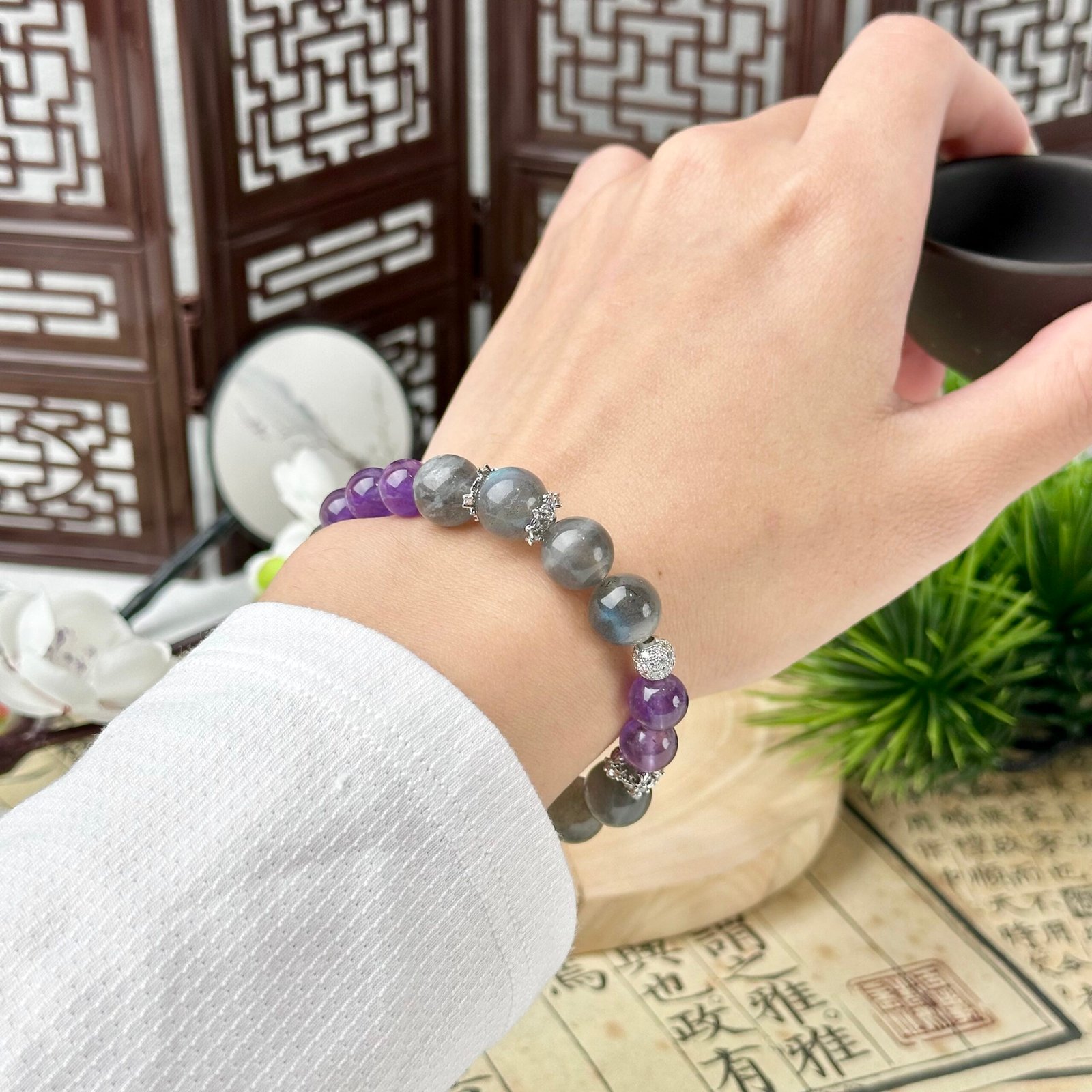 Stone Size:8/10mm Grey Moonstone+8mm Amethyst