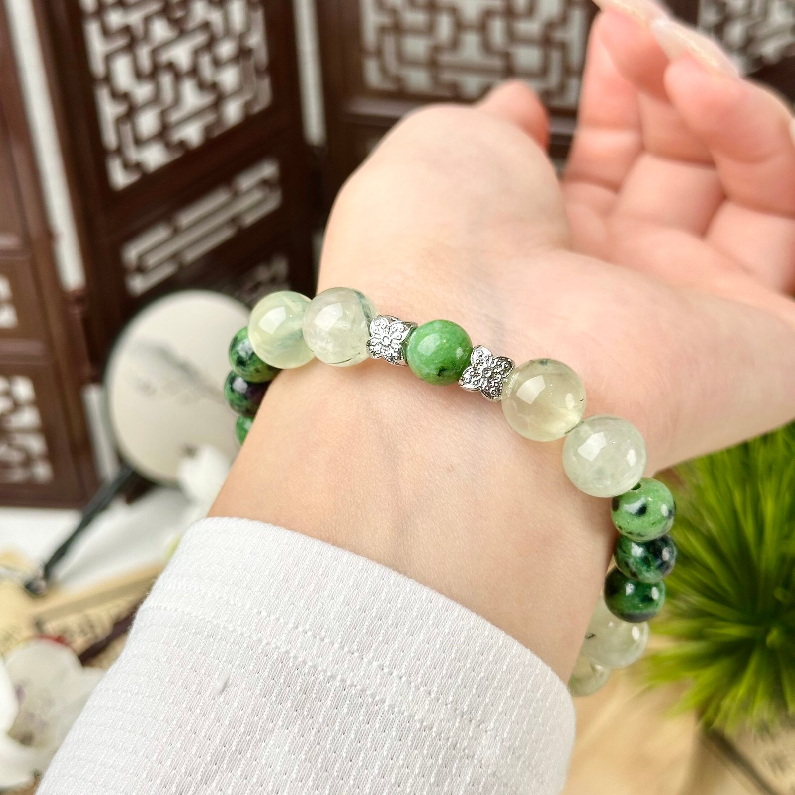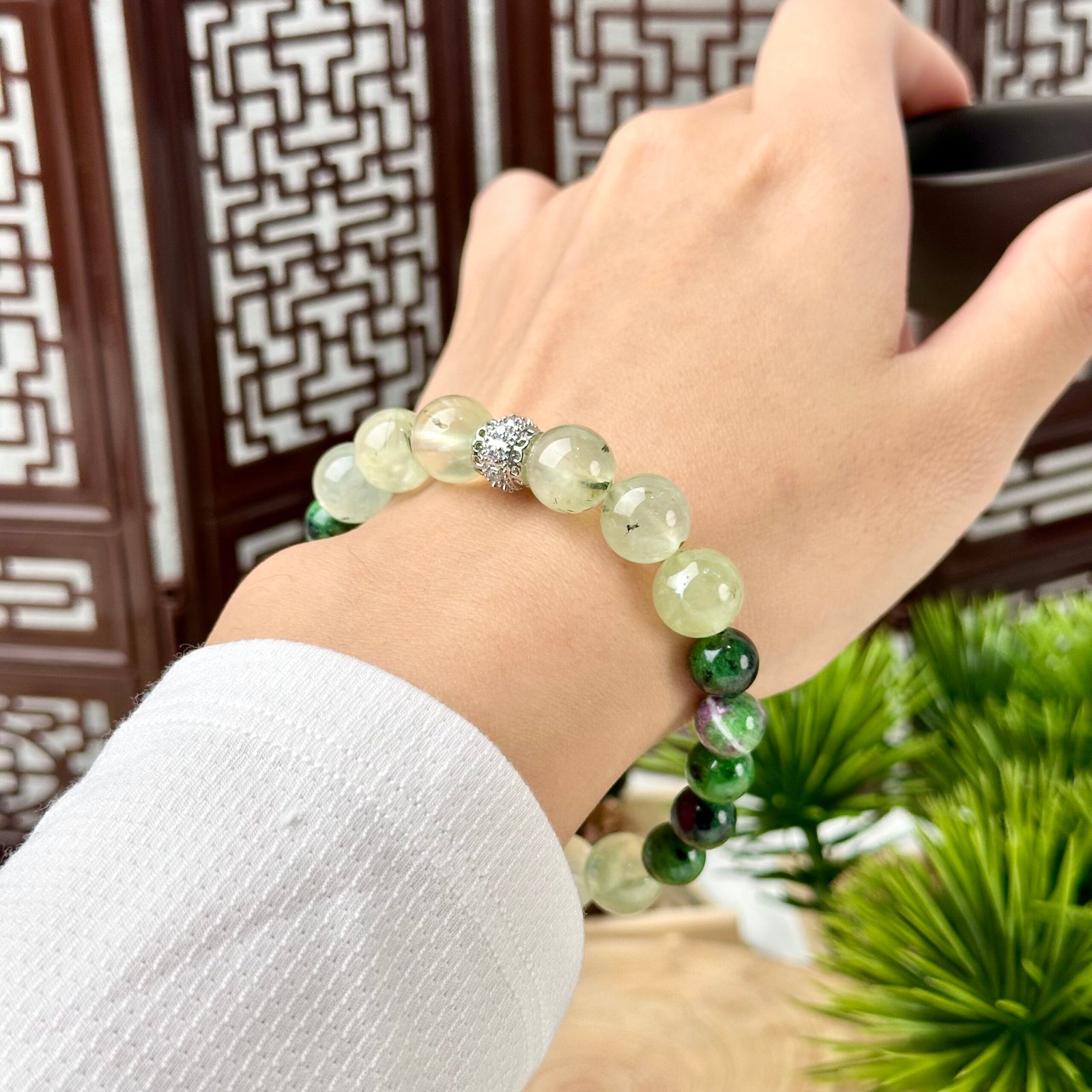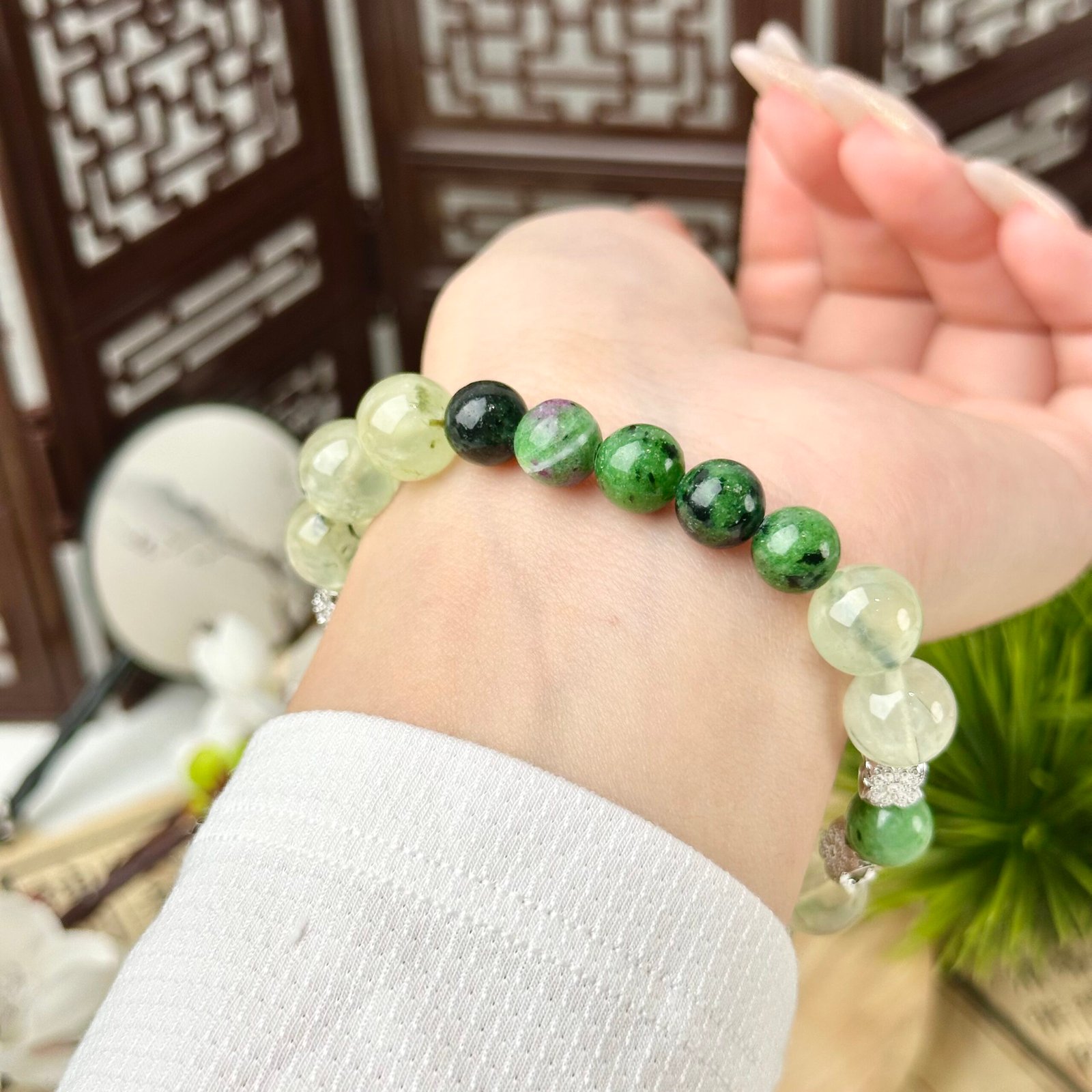 Stone Size:10mm Prehnite+ 8mmRuby Zoisite